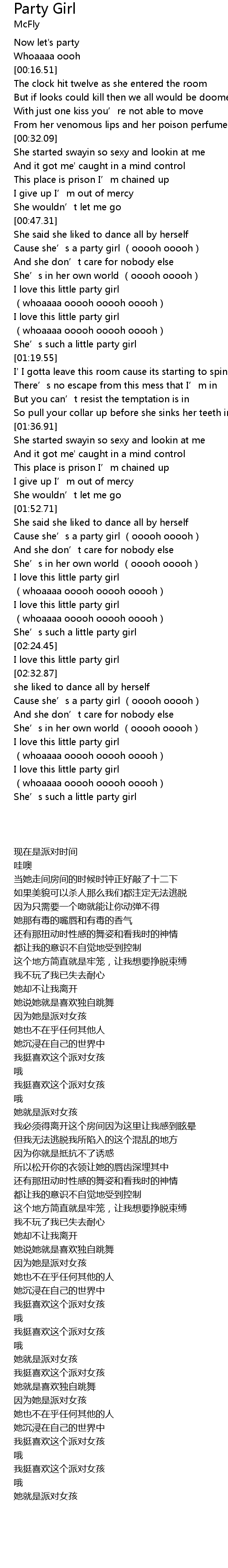 | [02:41.96] | Cause she’s a party girl (ooooh ooooh) |