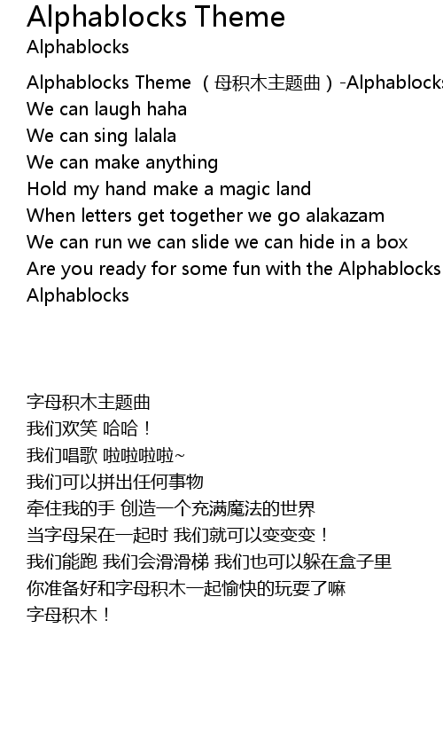 | [00:00.00] | Alphablocks Theme mǔ jī mù zhǔ tí qū Alphablocks |
