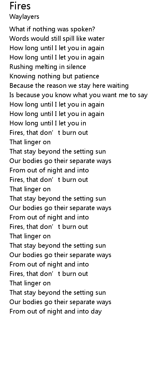 | Fires, that don' t burn out | |