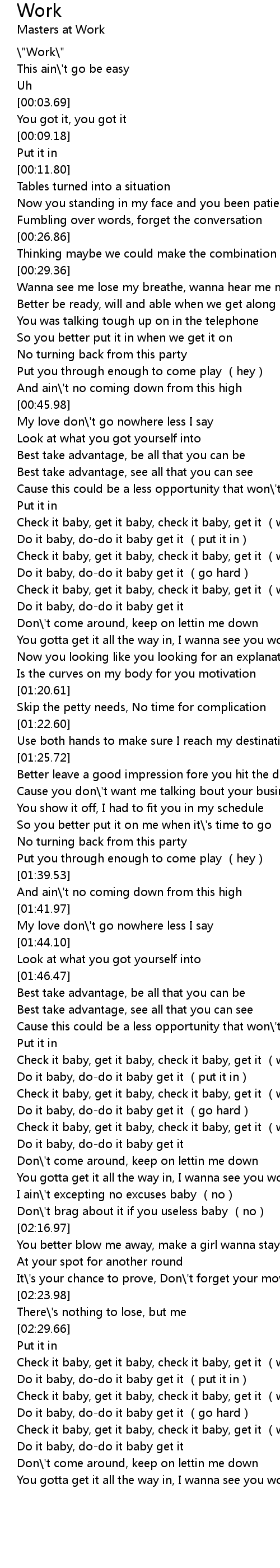 | [02:03.35] | Check it baby, get it baby, check it baby, get it work |