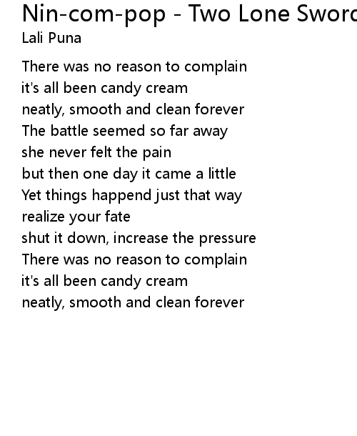 | Song | Nin-com-pop - Two Lone Swordsmen - Sampler Version |