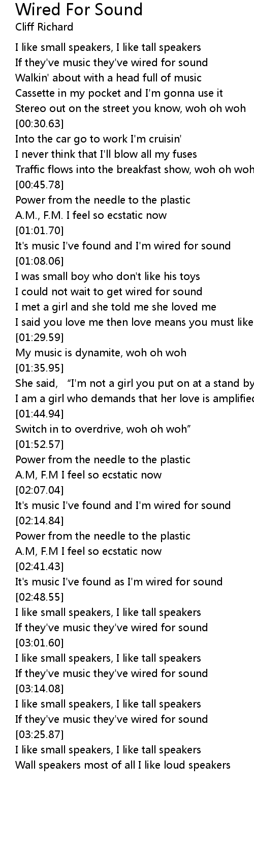 | [01:02.33] | It's music I've found and I'm wired for sound |