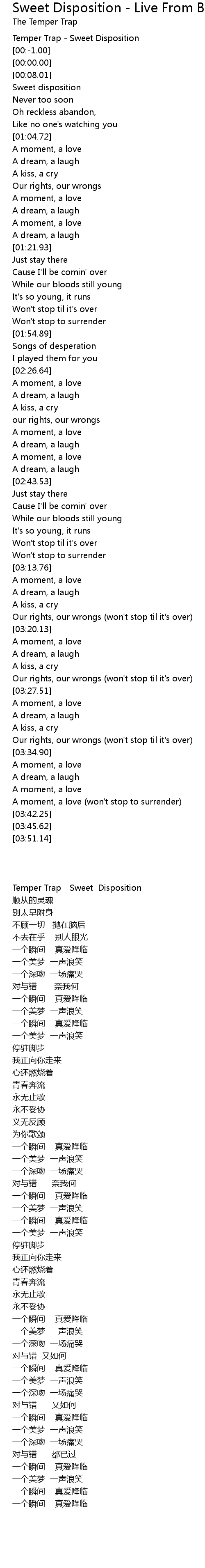 Sweet Disposition - Live From BBC 1's Radio Live Lounge Lyrics