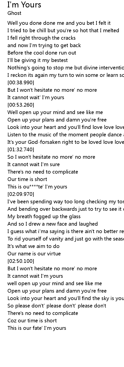 | [00:39.460] | But I won' t hesitate no more' no more |