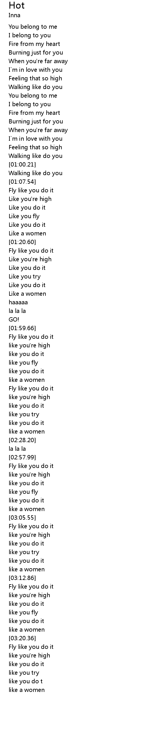 | [03:14.18] | Fly like you do it |