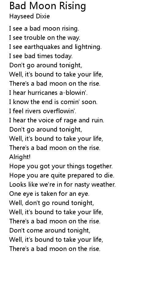 Bad Moon Rising Lyrics