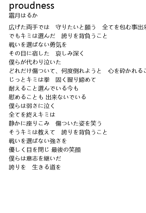 | [03:25.00] | そうキミは教えて 誇りを背負うこと 戦いを選ばない強さを |