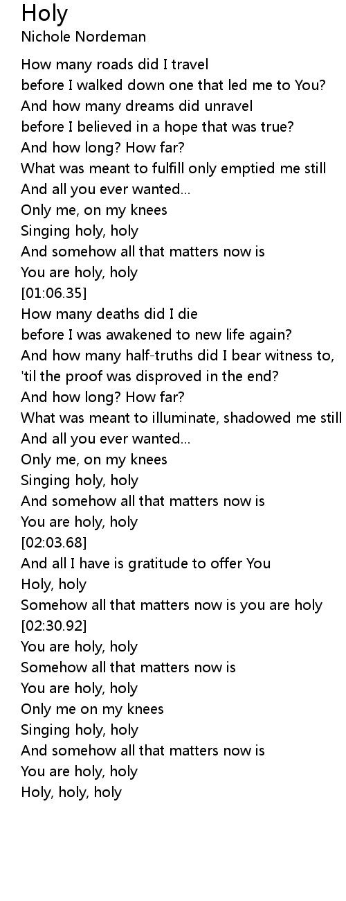 Somehow all that matters now is you are holy |