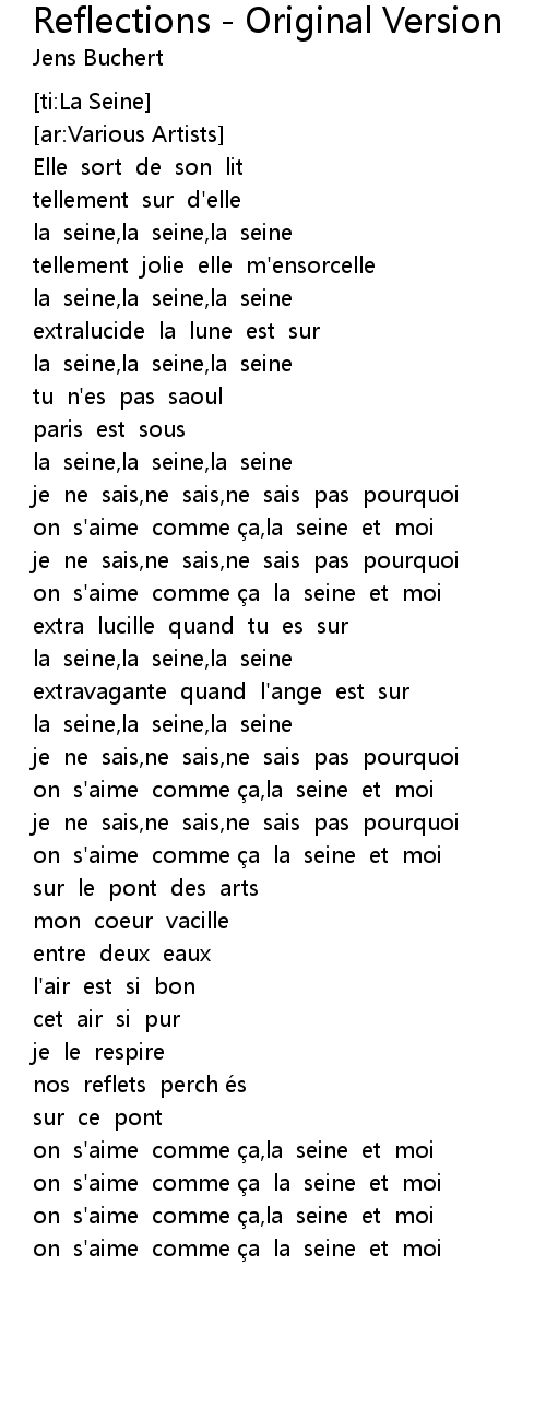 | [01:15.34] | la seine, la seine, la seine |
