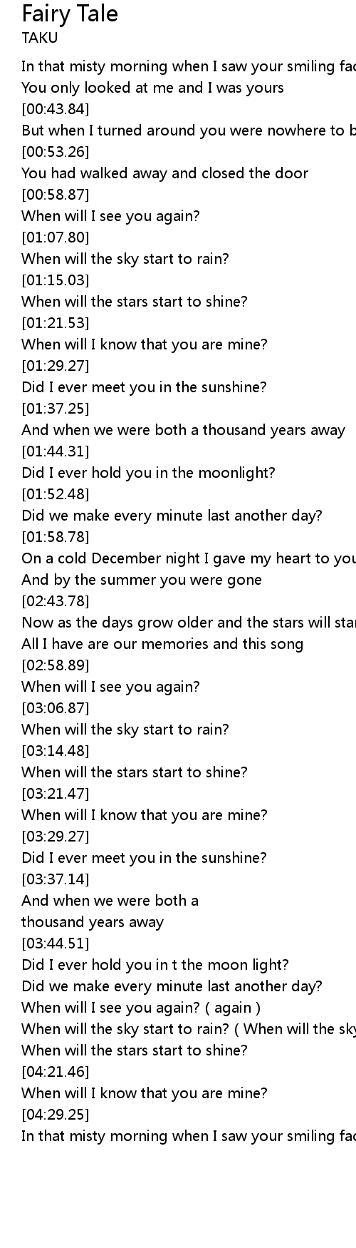 | [03:58.98] | When will I see you again?(again) |