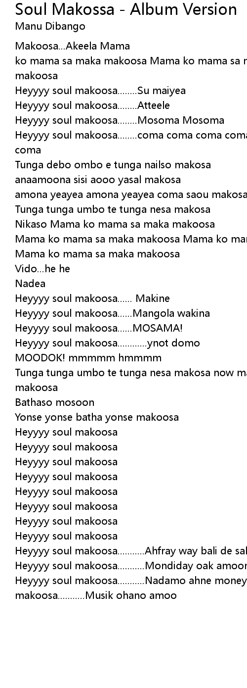 Heyyyy soul makoosa...........Nadamo ahne money money Heyyyy soul makoosa...........Musik ohano amoo |
