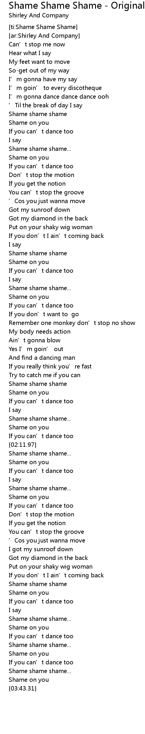 | [ti:Shame Shame Shame] | |