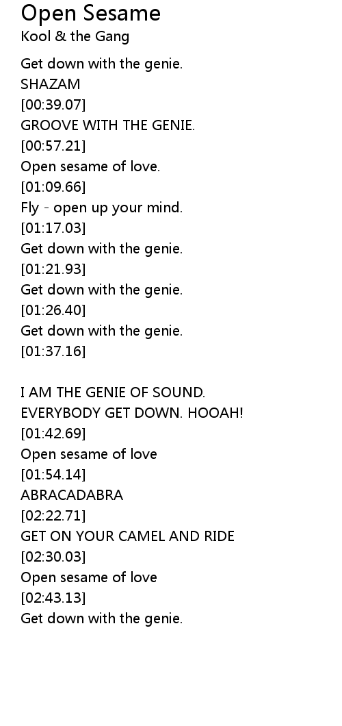 | Song | Open Sesame |