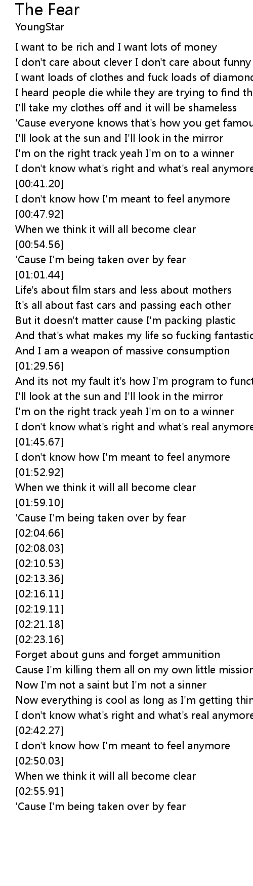 'Cause I'm being taken over by fear |