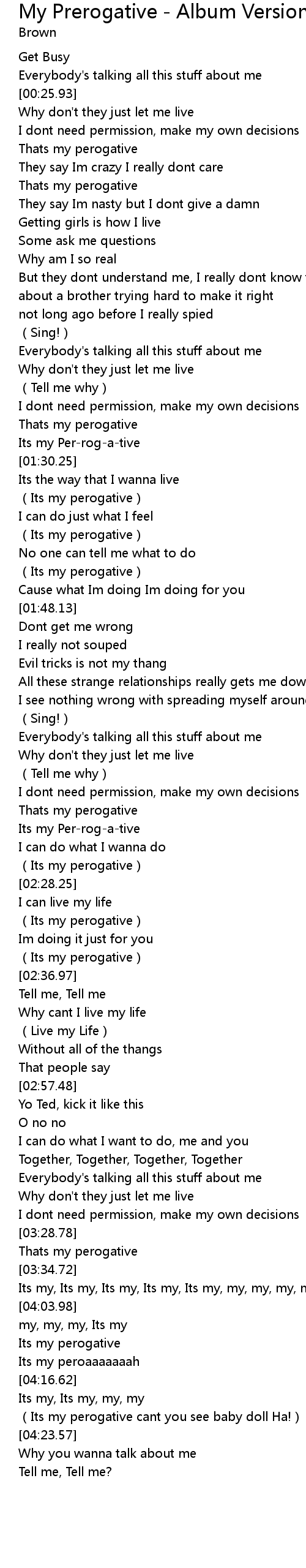 | [01:29.48] | Its my Perrogative |