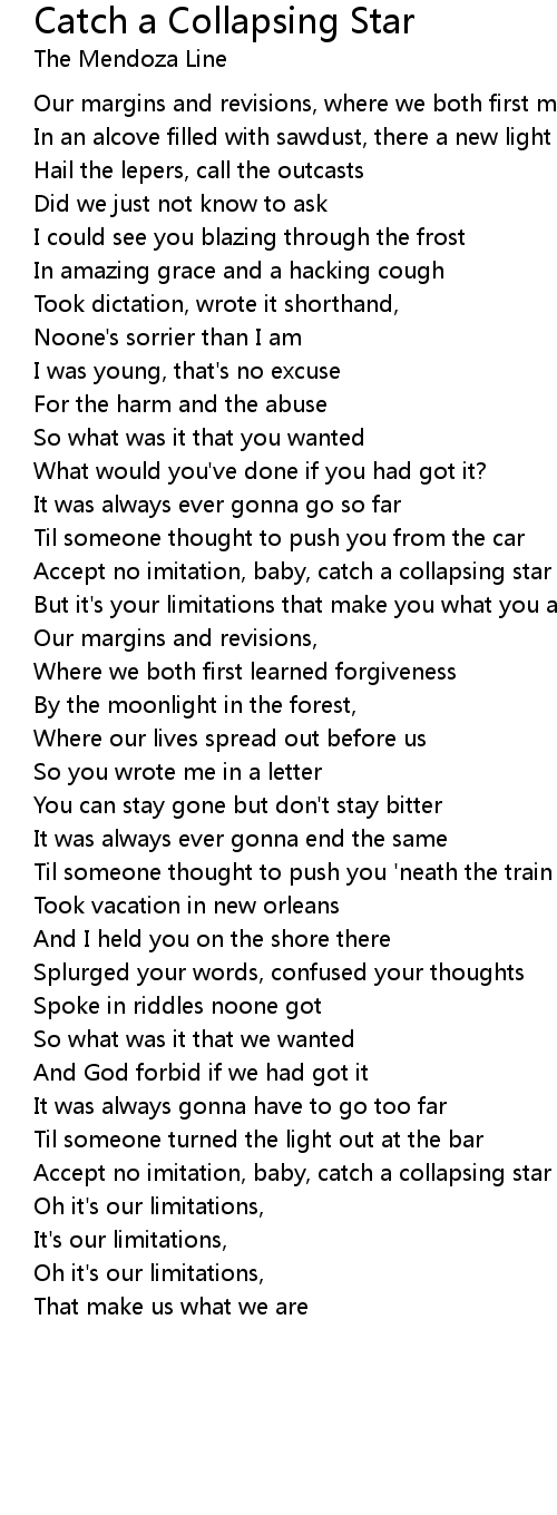 Accept no imitation, baby, catch a collapsing star |