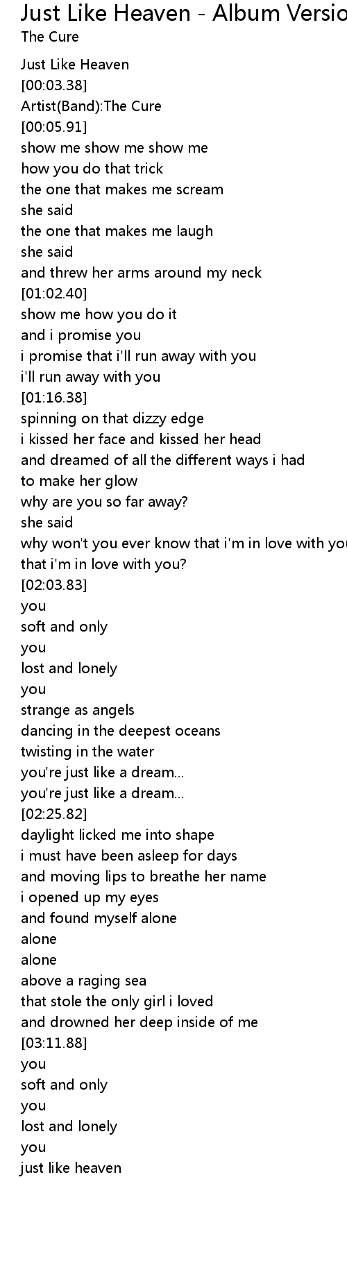 [00:01.89] Just Like Heaven