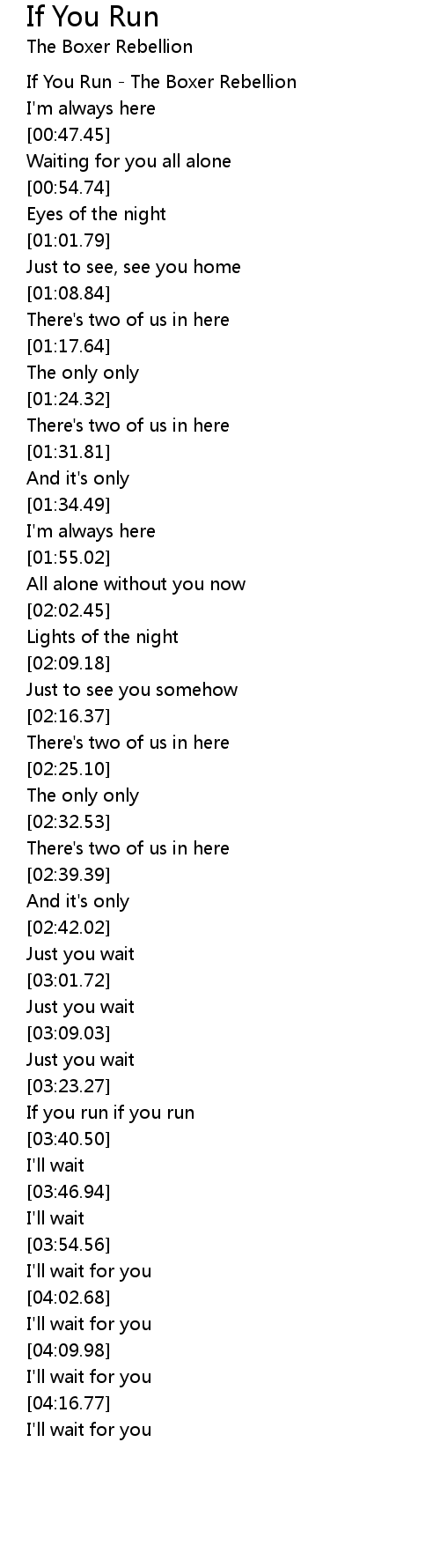 If You Run - The Boxer Rebellion |