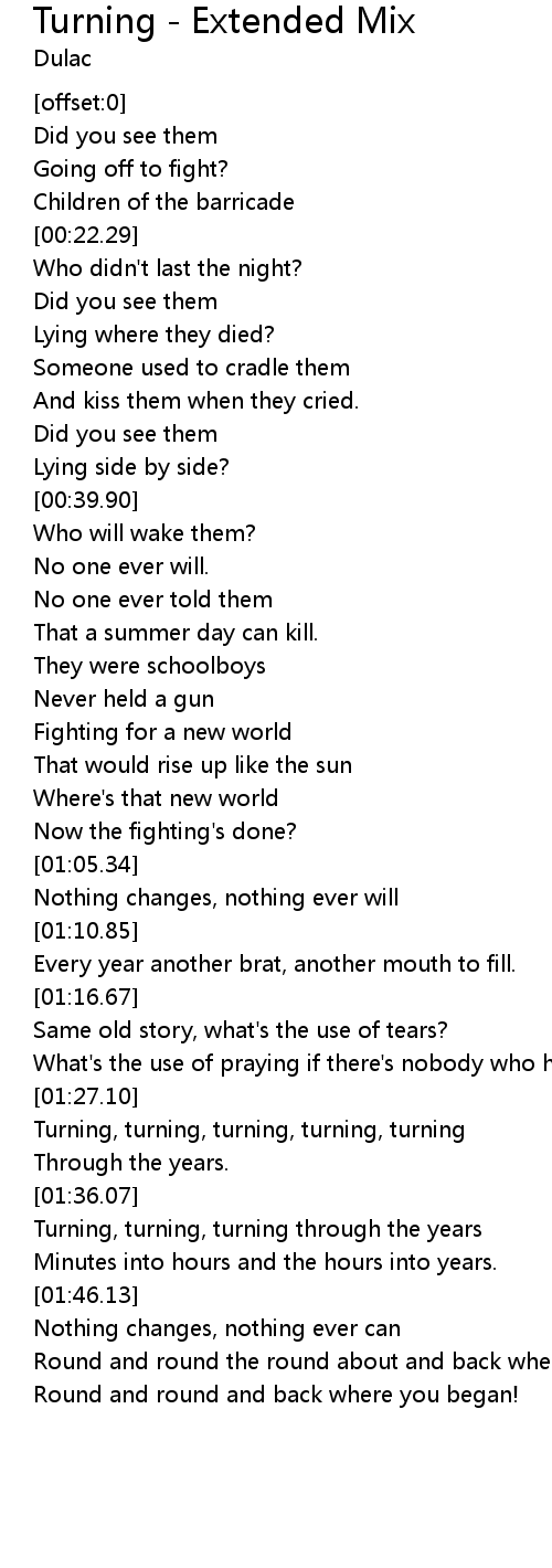 Turning, turning, turning through the years |