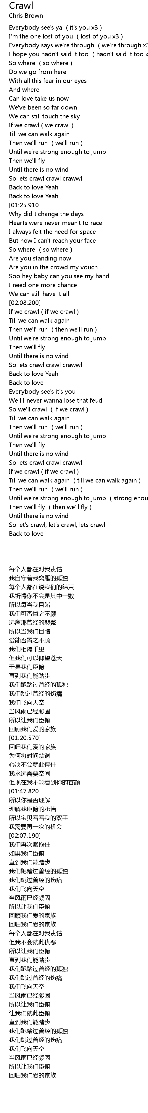 | [03:30.210] | So let' s crawl, let' s crawl, lets crawl |