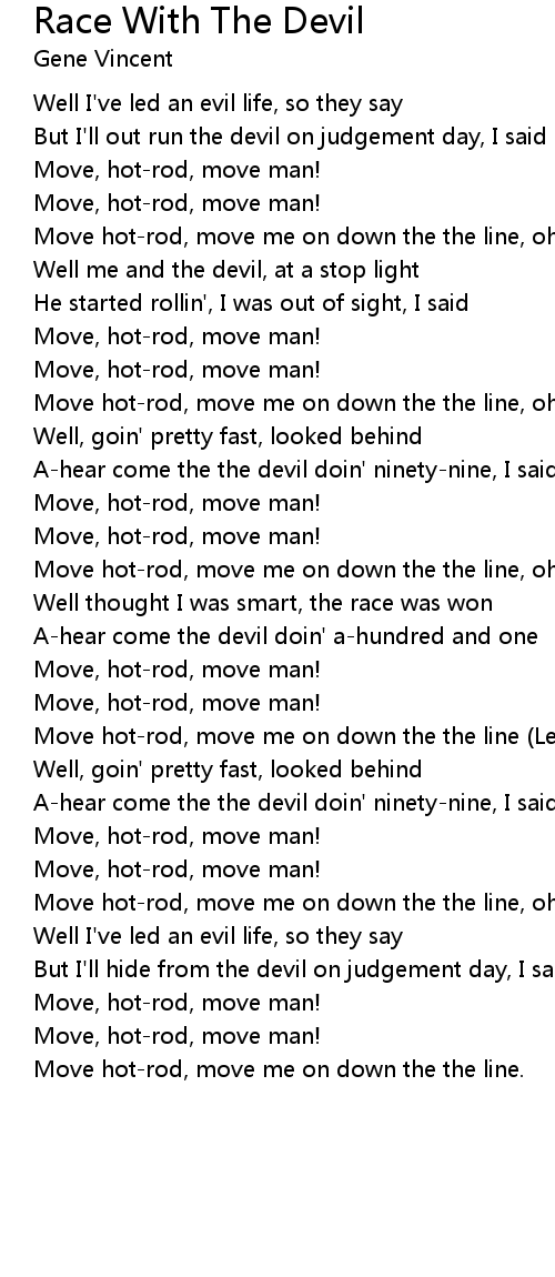 Move hot-rod, move me on down the the line. |