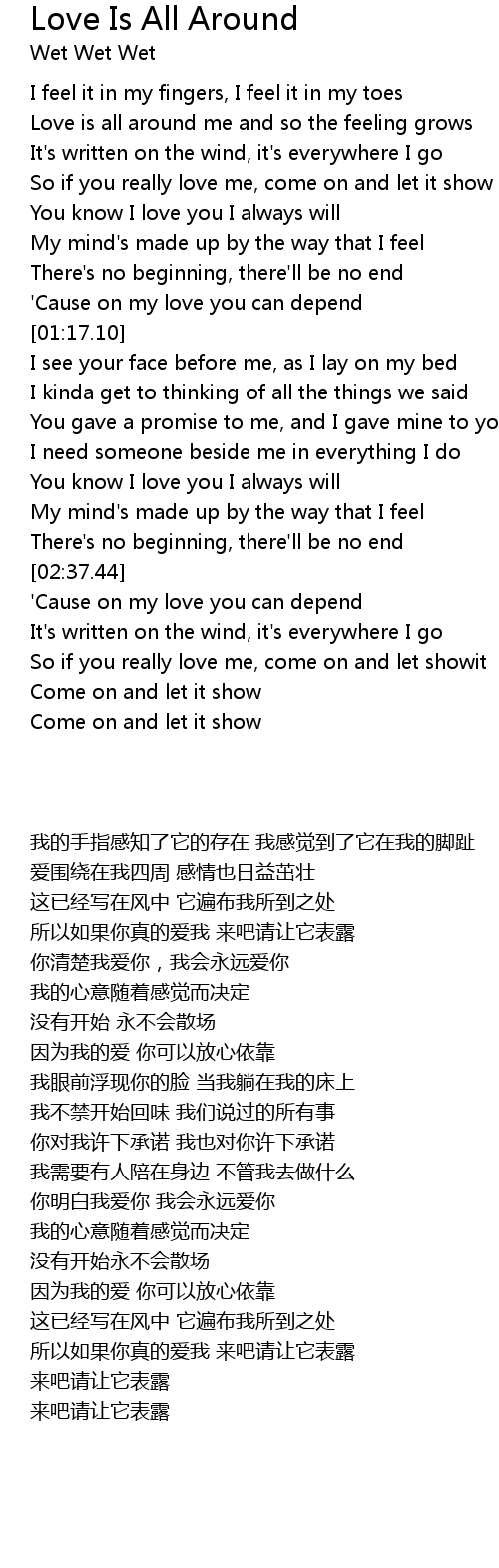 Love is all around me and so the feeling grows |