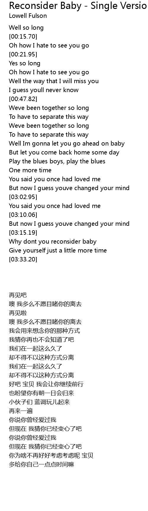 Why dont you reconsider baby |
