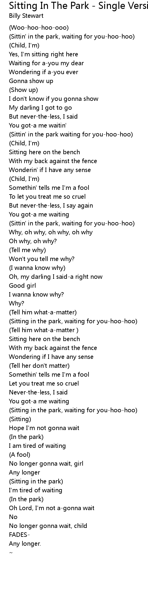 (Sitting in the park, waiting for you-hoo-hoo) |