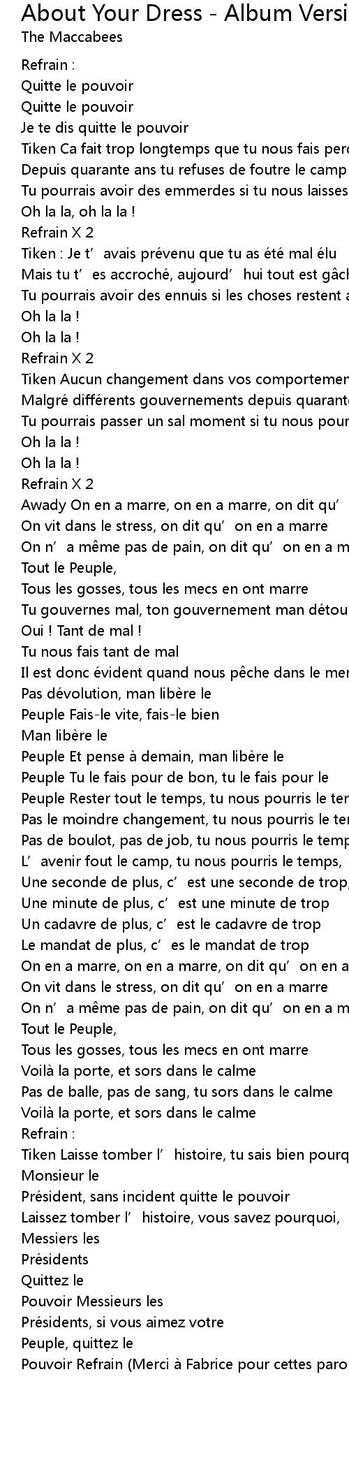 | Pouvoir Refrain Merci a Fabrice pour cettes paroles |