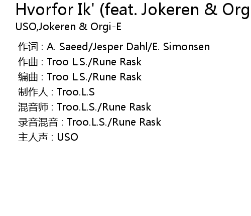 | Song | Hvorfor Ik' (feat. Jokeren & Orgi-E) |