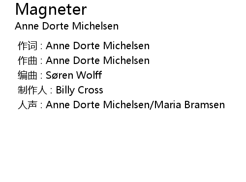 | [00:00.000] | 人声 : Anne Dorte Michelsen/Maria Bramsen |