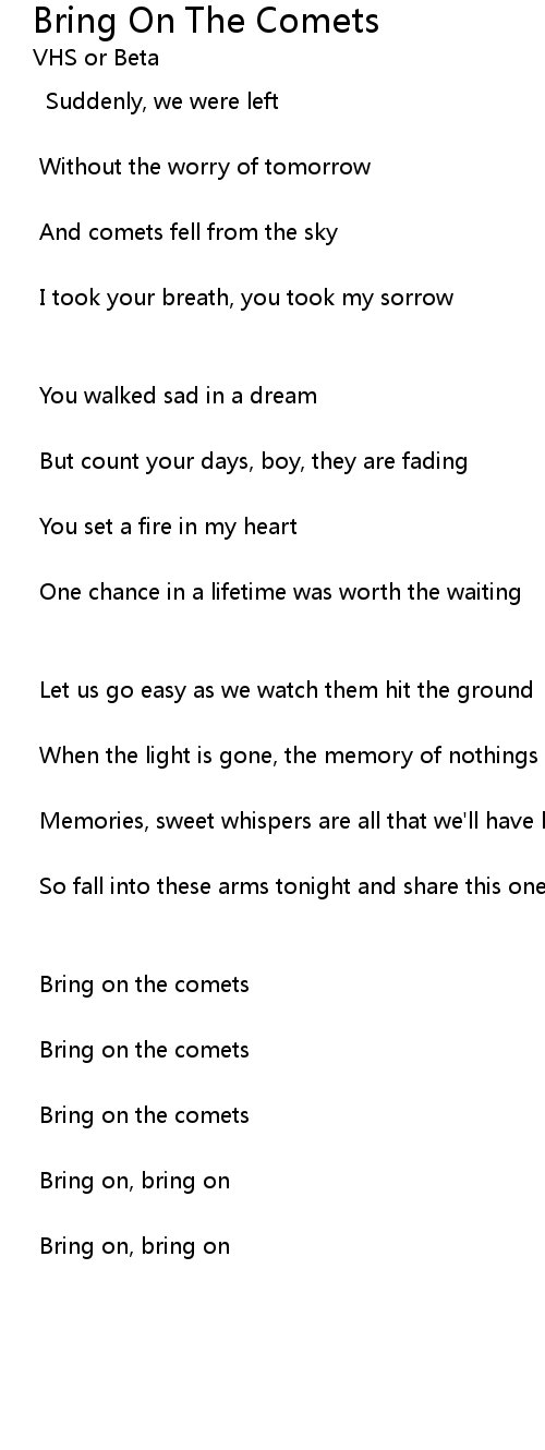 Bring on the comets |