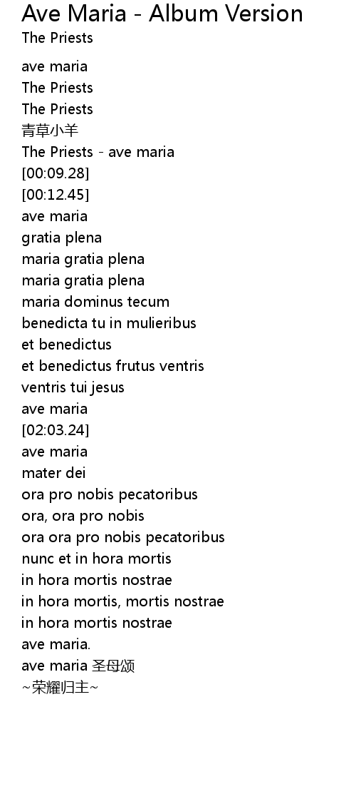 | [04:00.03] | ave maria shèng mǔ sòng |