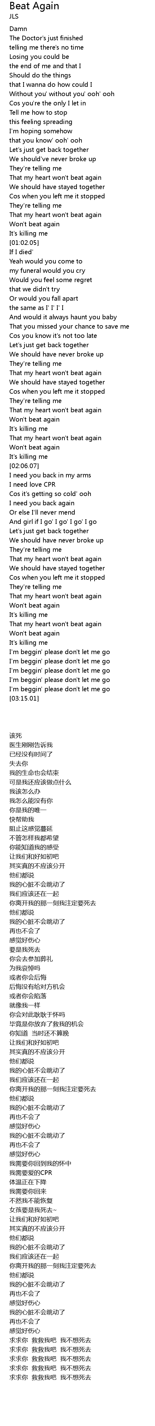 [02:01.33] Won't beat again