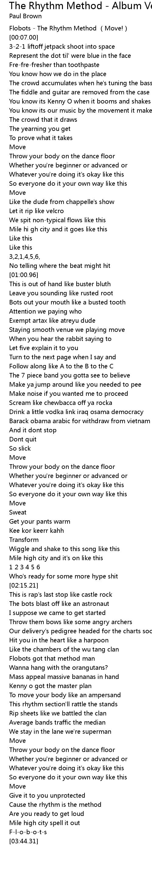 | [00:02.00] | Flobots The Rhythm Method Move! |