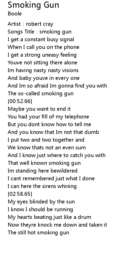 | [01:24.66] | That well known smoking gun |