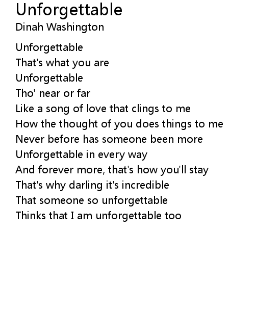 | Thinks that I am unforgettable too |