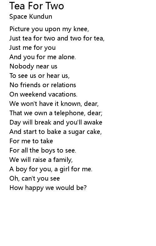| Just tea for two and two for tea, | |