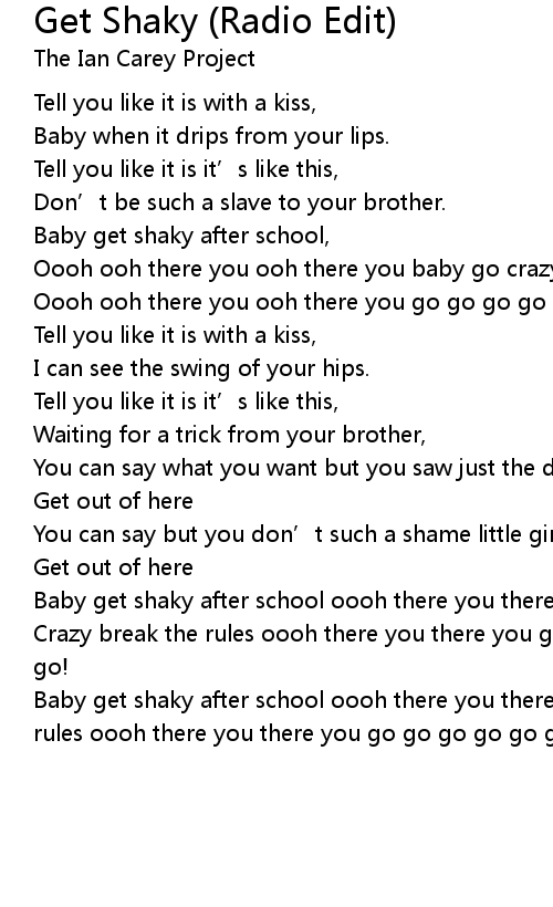 | Baby get shaky after school oooh there you there you baby go crazy break the rules oooh there you there you go go go go go go oh oh there you go! |