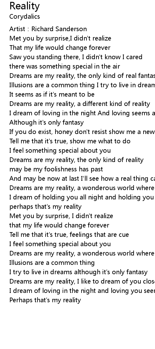 | Dreams are my reality, a wonderous world where I like to be | |