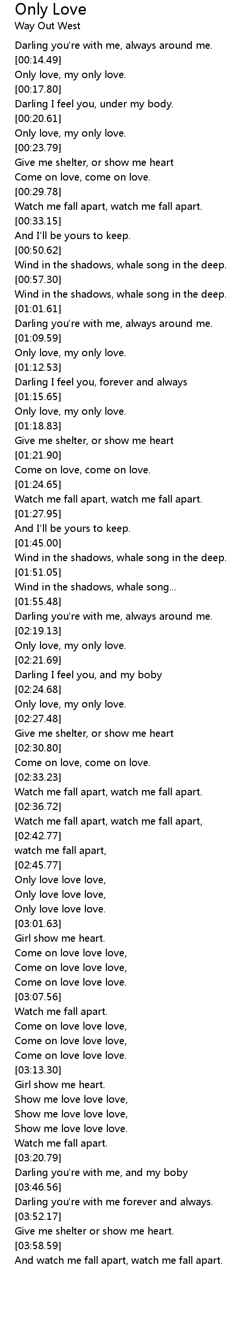 Only Love Lyrics
