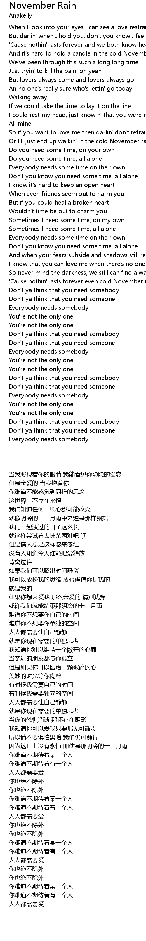 'Cause nothin' lasts forever even cold November rain |