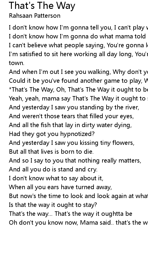 Yeah, yeah, mama say That's The Way it ought to stay. |