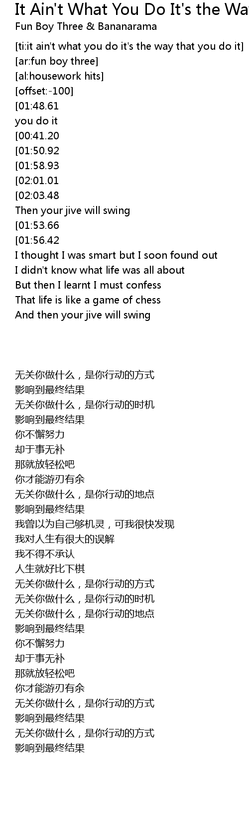 [00:33.20][01:50.92] It ain't what you do it's the time that you do it
