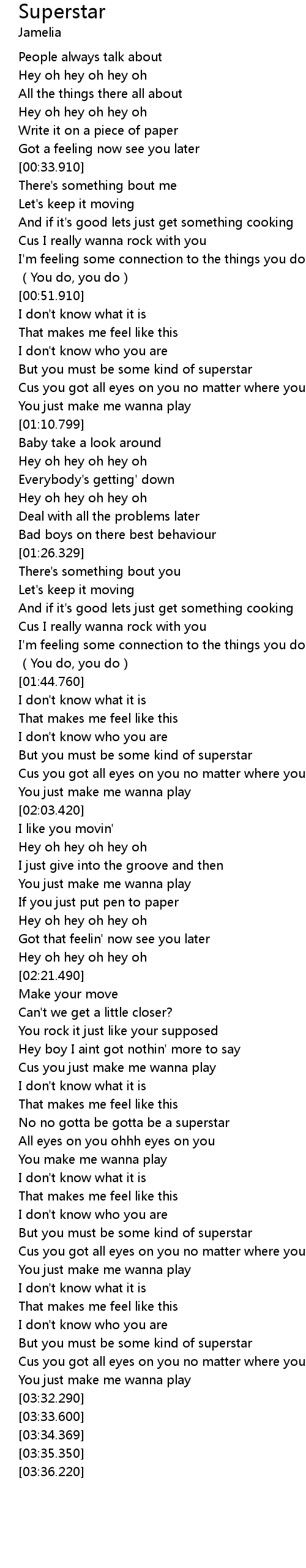 | [02:44.510] | No no gotta be gotta be a superstar |