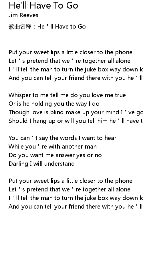 | 歌曲名称:He'll Have to Go | |