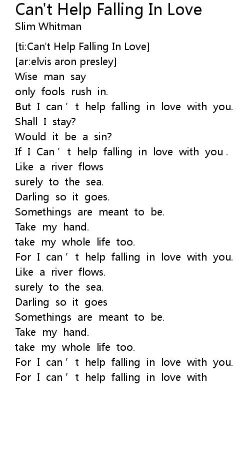 | [00:49.91] | If I Can ' t help falling in love with you . |