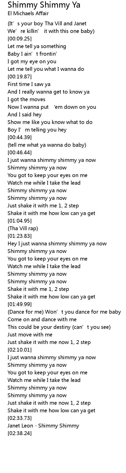 | [00:47.14] | I just wanna shimmy shimmy ya now |