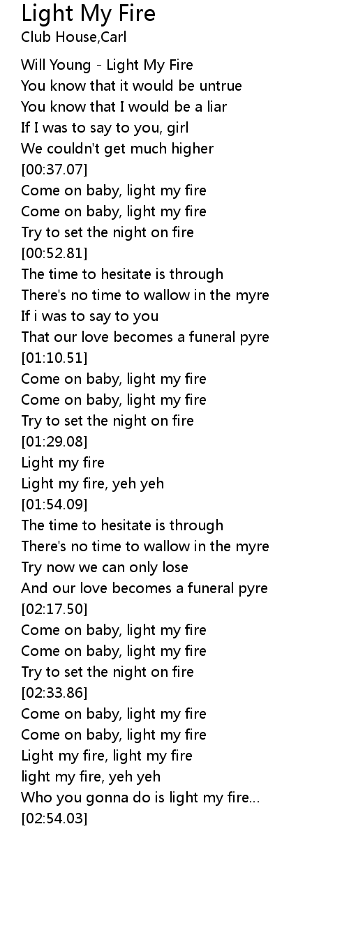 | [02:45.31] | light my fire, yeh yeh |
