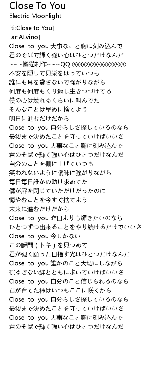 | [02:04.540] | Close to you 昨日よりも輝きたいのなら |